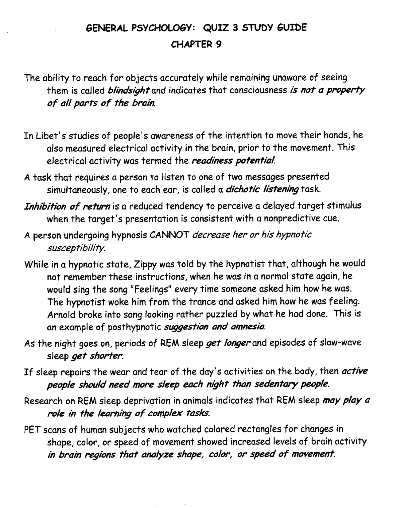 General Psychology Exam 3 Study Guide Psyc 1200 Study Notes Psychology Docsity