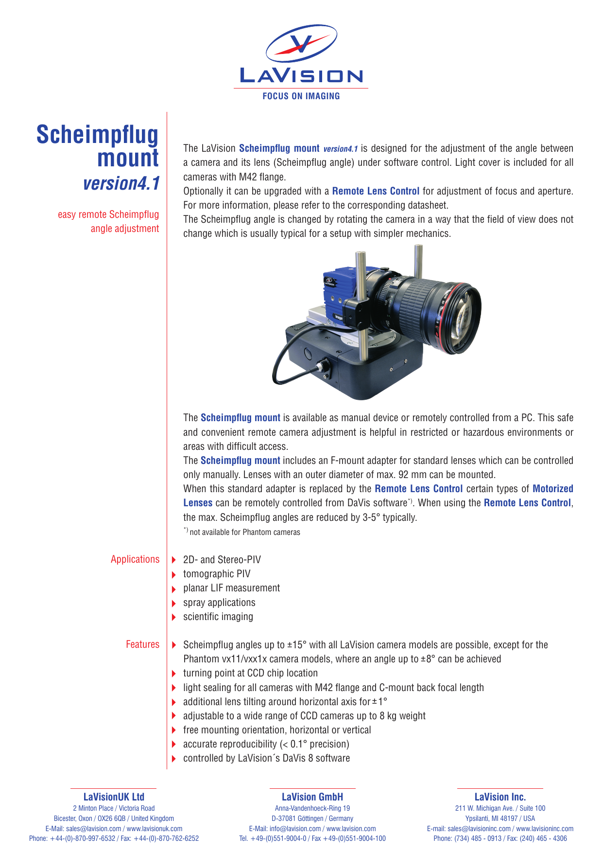 LaVision was founded in 1989 in Göttingen Germany. Web PIV-Messanordnung umfassend eine mittels eines Scheimpflug-Adapters 28 nach einem der vorangehenden Ansprüche mit einem Objektiv 22 gekoppelten.