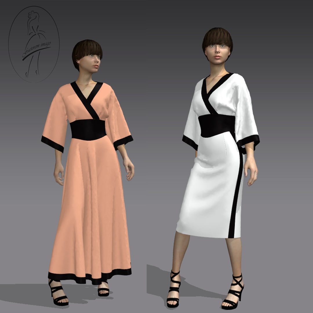 Pdf Kimono Style Dress Sewing Pattern Nipped Waist Dress Etsy