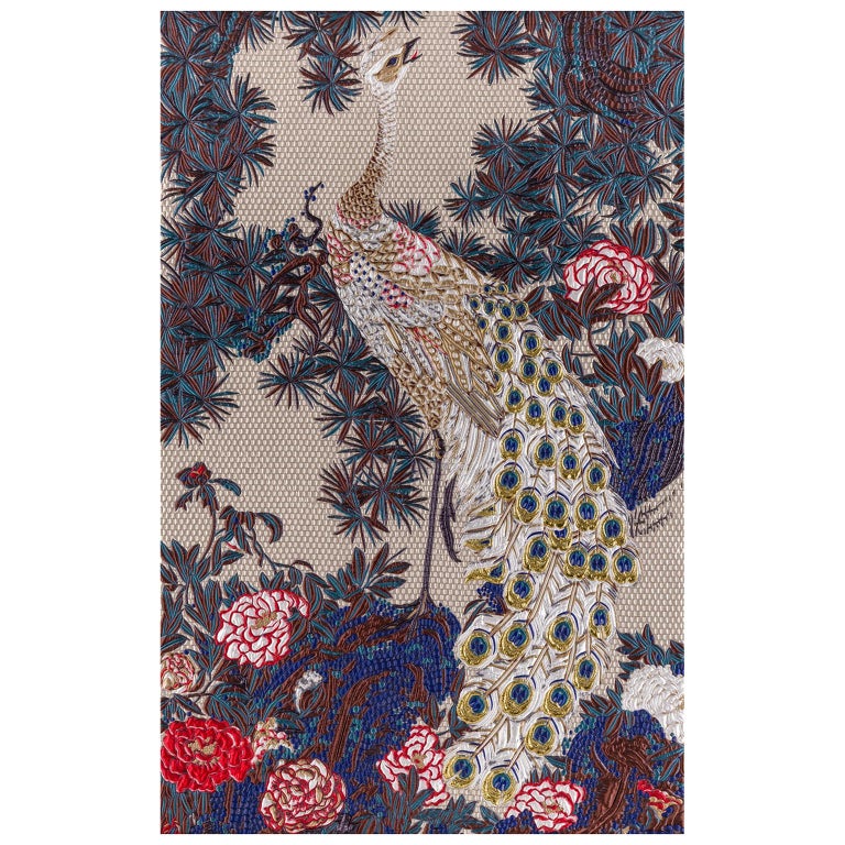 Fabric Tapestry With Peacock Design Upholstered Panel On Demand For Sale At 1stdibs Tapestry Print On Demand Peacock Design Okc Peacock Tapestry Fabric